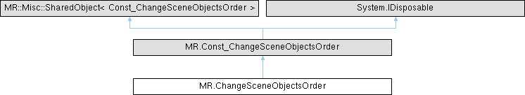 History action for scene objects order change Generated from class MR.ChangeSceneObjectsOrder. Base classes: Direct: (non-virtual) MR.HistoryAction This is the non-const half of the class.