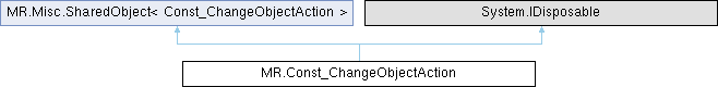 History action for object change Generated from class MR.ChangeObjectAction. Base classes: Direct: (non-virtual) MR.HistoryAction This is the const half of the class.