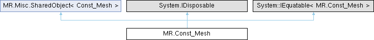 This class represents a mesh, including topology (connectivity) information and point coordinates, as well as some caches to accelerate search algorithms Generated from class MR.Mesh. This is the const half of the class.