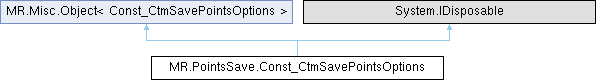 Generated from class MR.PointsSave.CtmSavePointsOptions. Base classes: Direct: (non-virtual) MR.SaveSettings This is the const half of the class.