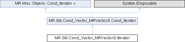Inheritance diagram for MR.Std.Const_Vector_MRVector3i.Iterator:Public Member Functions | |
