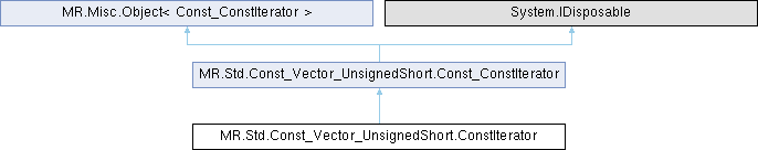 Inheritance diagram for MR.Std.Const_Vector_UnsignedShort.ConstIterator:Public Member Functions | |